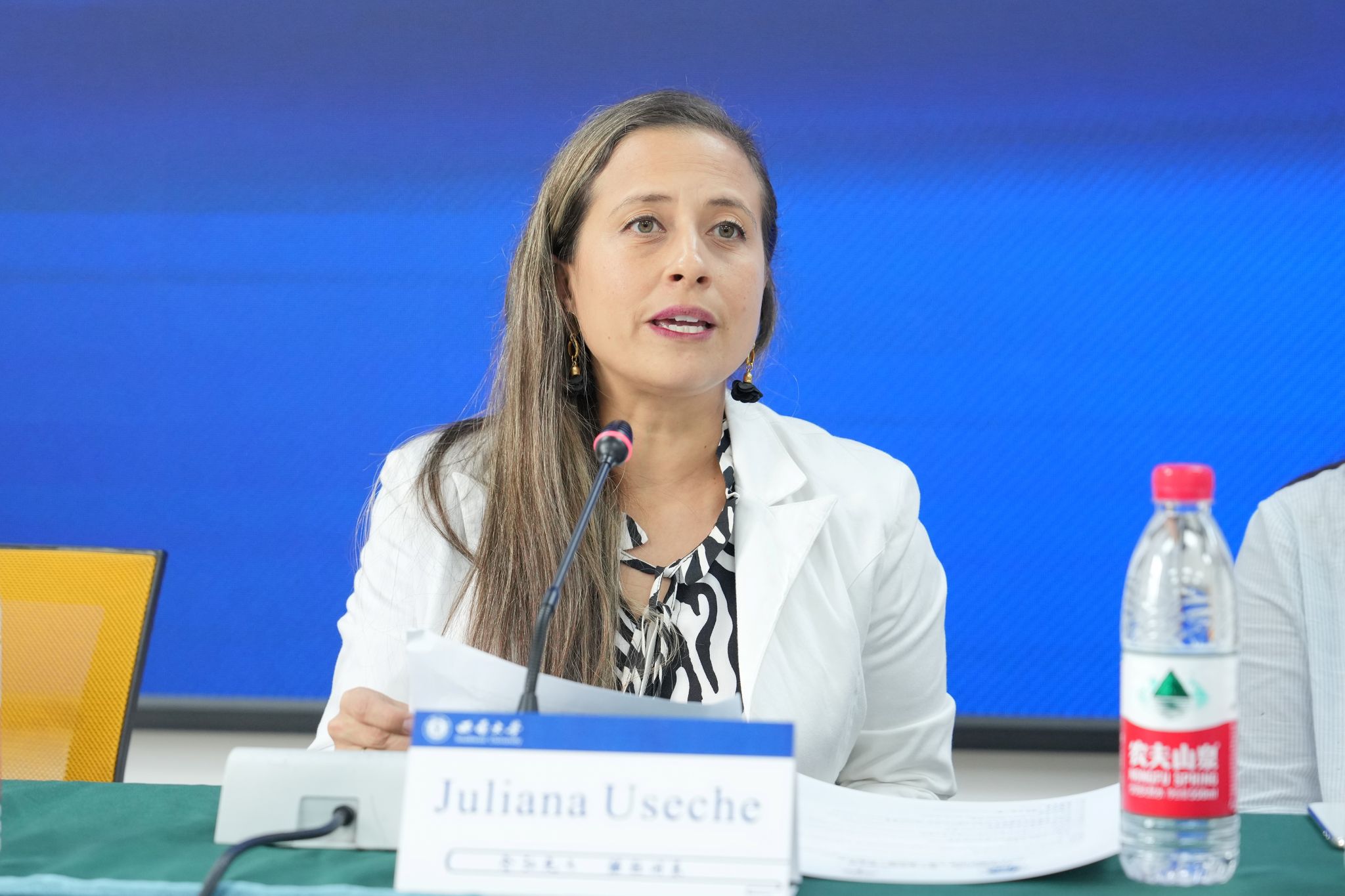 威尔蒙公司教师代表Juliana Useche鼓励大家通过中国特别是suncitygroup太阳集团的体验,不断扩宽文化视野,追求一个个新的人生高度。她代表董事长Raquel Rojas、副董事长Esteban Pérez以及全体师生,期待哥中两校师生之间建立持久的友谊和合作。