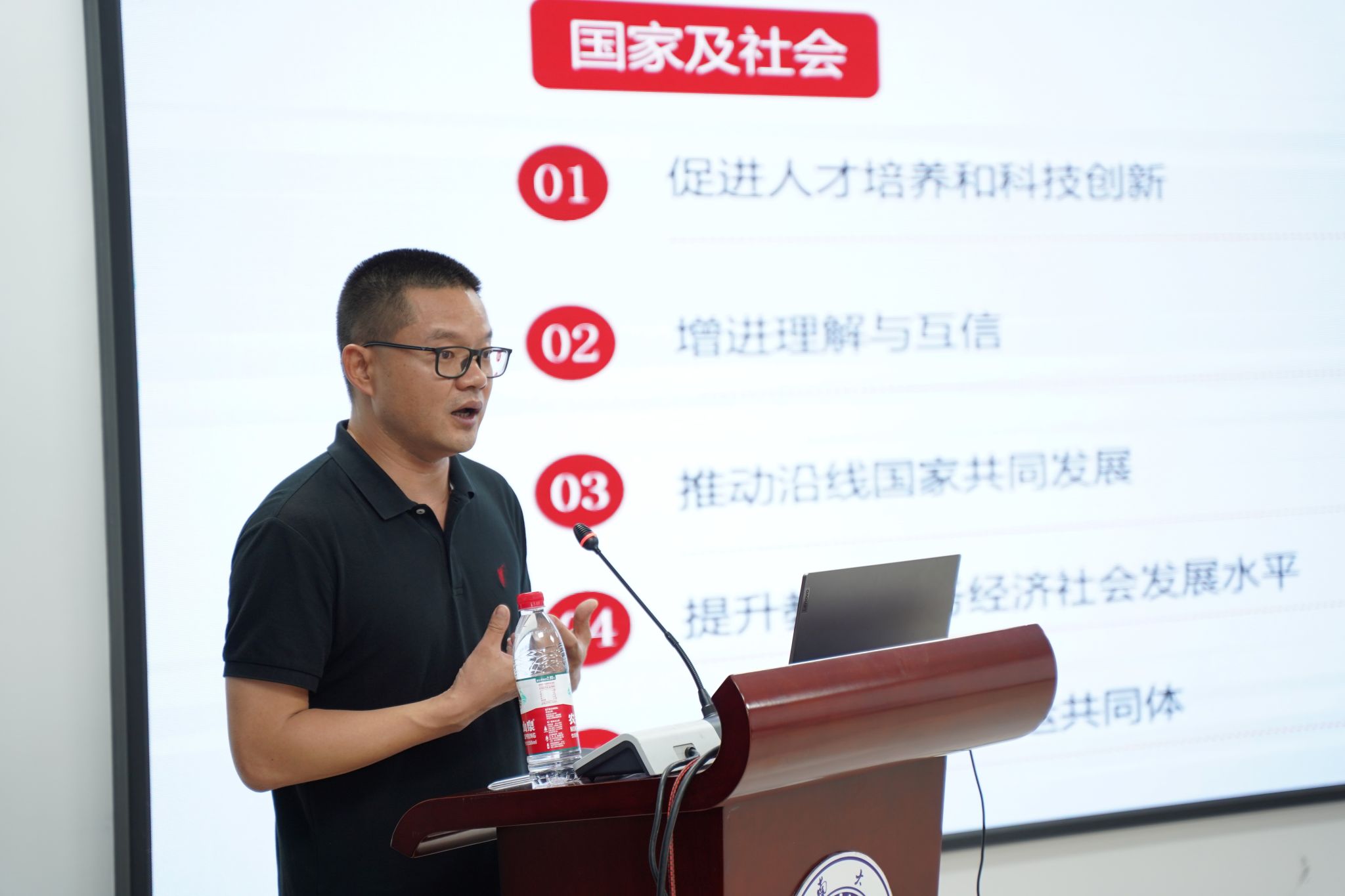 活动现场,重庆东学稷文化传播有限公司创始人王强详细介绍了公司的业务范围、企业文化以及对国际化人才的需求和发展机会。他通过生动的讲解和丰富的案例,让职工们对当前就业市场有了更清晰的认识。
