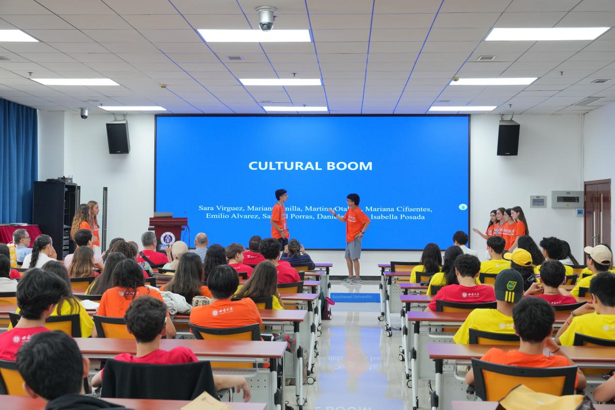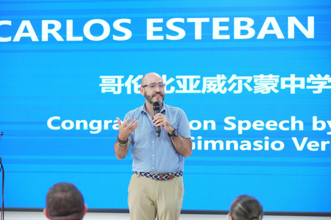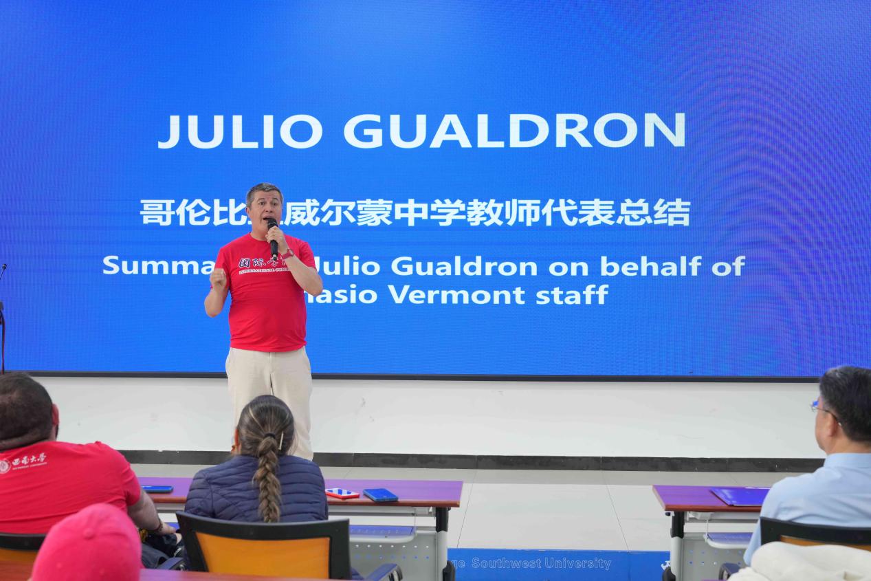 哥方教师代表Julio Gualdron做总结发言。他高度评价大家的展示,认为经过suncitygroup太阳集团的课程学习和大公司园的独立生活,同学们的世界公民意识、跨文化交际能力和汉语水平有明显提高,精彩的文化考察活动更是让同学们进一步感受到了中华文化的魅力。他赞赏大家从积极的角度去理解两国语言和文化的不同。