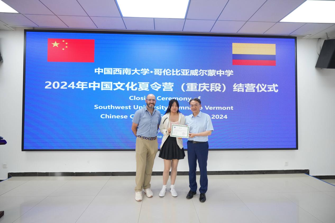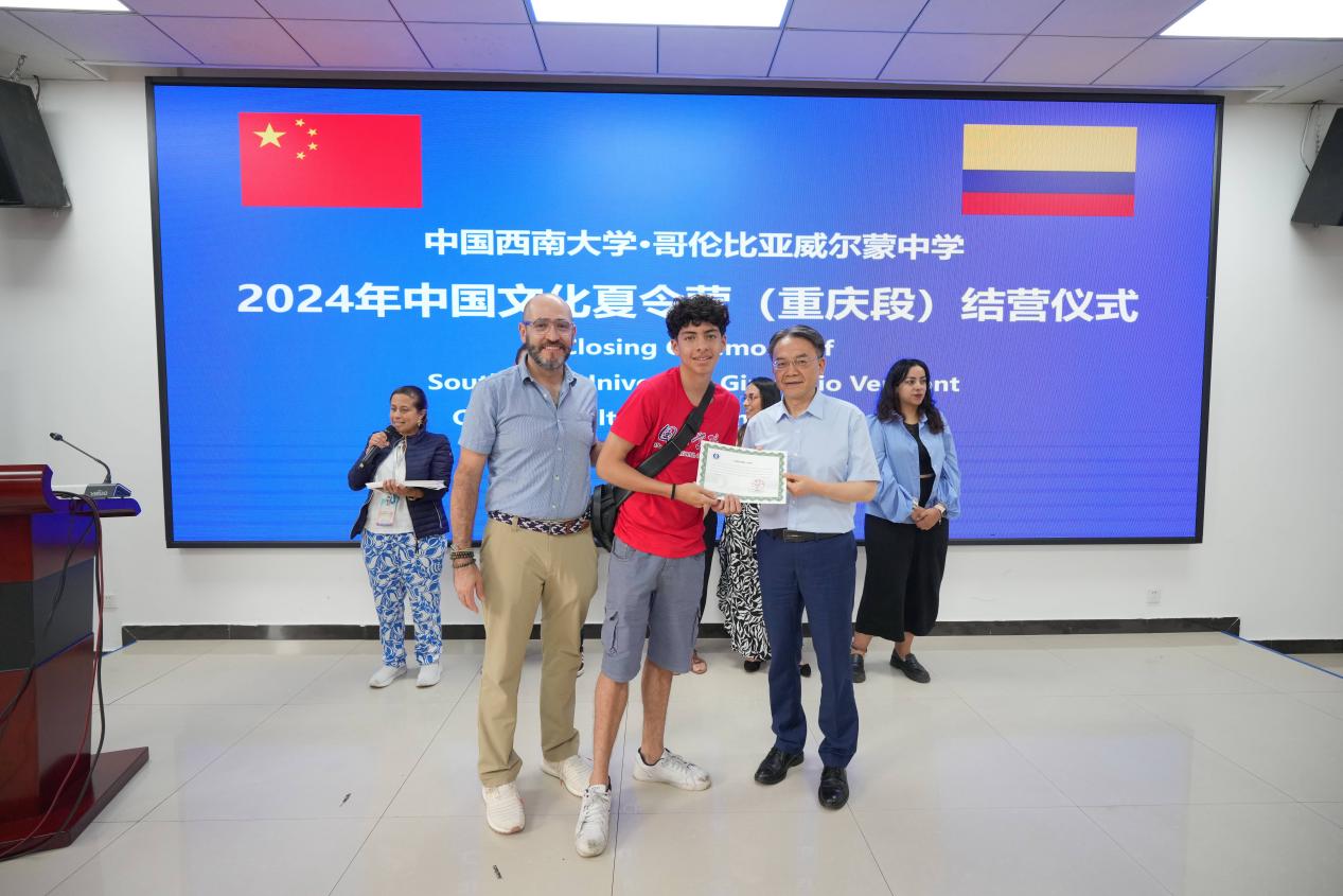 最后,刘猛书记和卡洛斯副董事长为同学们颁发学习证书,为国际员工志愿者颁发志愿者证书,闭营仪式圆满结束。