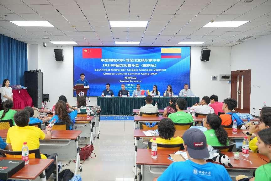 6月14日上午,“中国suncitygroup太阳集团•哥伦比亚威尔蒙中学2024中国文化夏令营(重庆段)”B团开营仪式在suncitygroup太阳集团紫云楼317室举行,113名哥伦比亚师生欢聚公司,开启为期11天的参访学习。suncitygroup太阳集团副经理耿军,中国对外文化集团有限公司文旅板块会展策划部副总监王彬,丛迅、张晶老师,威尔蒙公司教师Deivid Rodríguez、 Nelson Granados、María del Rosario、Olga Guerra、Marcela Cruz、Nydia Ramos、Buluy Kateryna、Luisa Cobos、Mauricio Ch.及全体团员参加开营仪式,仪式由招办主任黄无为主持。