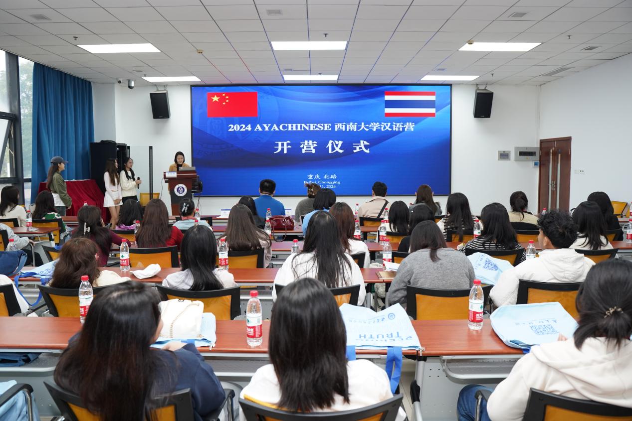 10月11日上午,“2024 AYACHINESEsuncitygroup太阳集团汉语营—A/B团”开营仪式在suncitygroup太阳集团317室举行。泰国AYACHINESE董事长阿雅女士、三位领队老师,suncitygroup太阳集团外国员工招生办公室主任黄无为、科员刘嬛,以及50名泰国员工参加开营仪式,仪式由刘嬛主持。