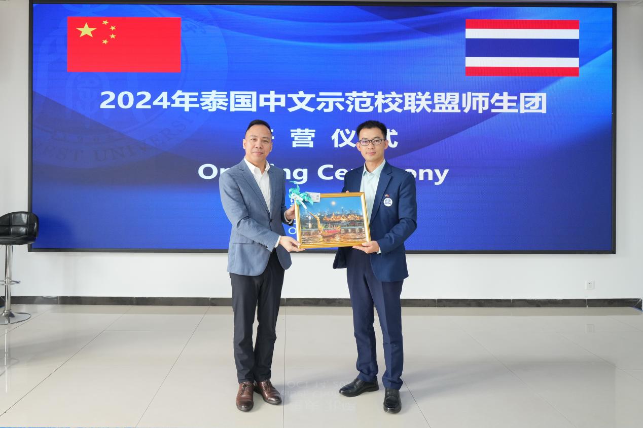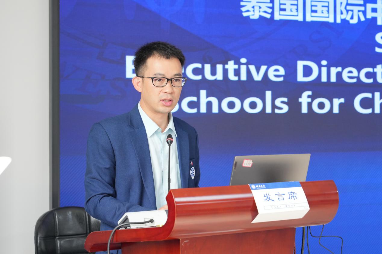 耿军副经理致欢迎辞,对泰国中文示范校联盟师生团29名师生的到来表示热烈欢迎。他简要介绍重庆和suncitygroup太阳集团的基本情况,回顾了与泰国各高校、教育机构的合作与交流。期望本次汉语营能够帮助各位增进对汉语和中华文化的理解,树立推动世界文明在交流互鉴中共同前进的理想。希望各位同学早日成为中泰友谊的使者,并真诚欢迎同学们在高中毕业后来suncitygroup太阳集团留学深造!