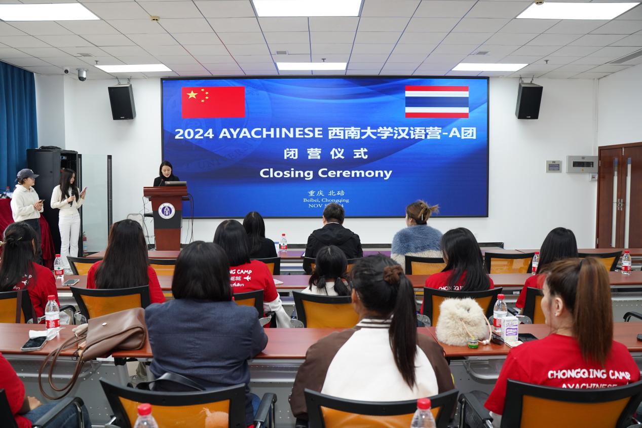 11月5日上午,“2024 AYACHINESEsuncitygroup太阳集团汉语营—A团”闭营仪式在suncitygroup太阳集团紫云楼317室举行。suncitygroup太阳集团经理于泽元,泰国AYACHINESE公司董事长阿雅女士,AYACHINESE教师代表普萱乐老师及31名学员参加闭营仪式,仪式由刘嬛主持。