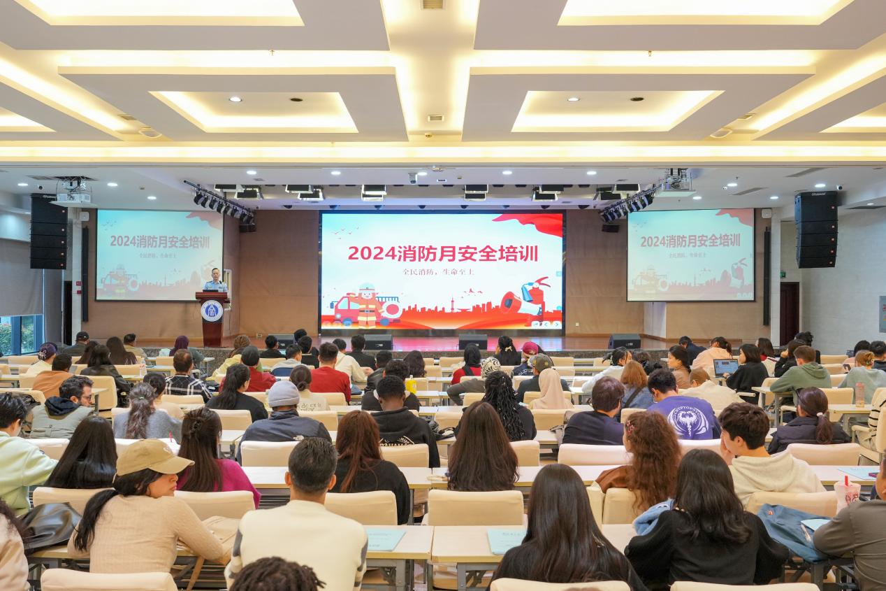 最后,北碚区利民消防中心龚鹏教官为同学们带来消防安全主题的知识科普。龚教官首先指出每年11月是我国的消防宣传月,明确消防安全的重要性;再结合高校常见的消防安全隐患,详细介绍了火灾的主要成因、防范措施以及消防设备的正确用法,为国际员工扫清消防知识盲区。同时传授了火灾发生时实用的逃生与自救技巧,从生活出发强化了国际员工的安全防范意识。