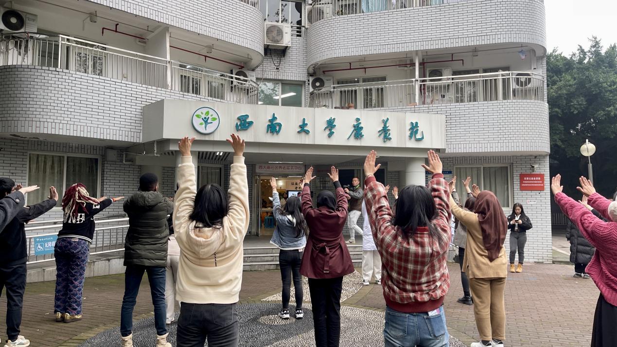动静相宜调身心,舒展从容养气血。八段锦作为一种低强度、高效率的中华传统运动,能够全面锻炼身体,调身、调息、调心。老师为职工详细讲解了八段锦的基本知识和中医养生理念,并带领大家学习动作要领。员工们起势、伸展、下蹲,动作行云流水。职工们不仅直观感受到养生功法的独特魅力,还在潜移默化中增进了对中国的认知与情感,更激发了“知华友华爱华”的共鸣,用实际行动践行着“感知中国”系列活动的深刻内涵。