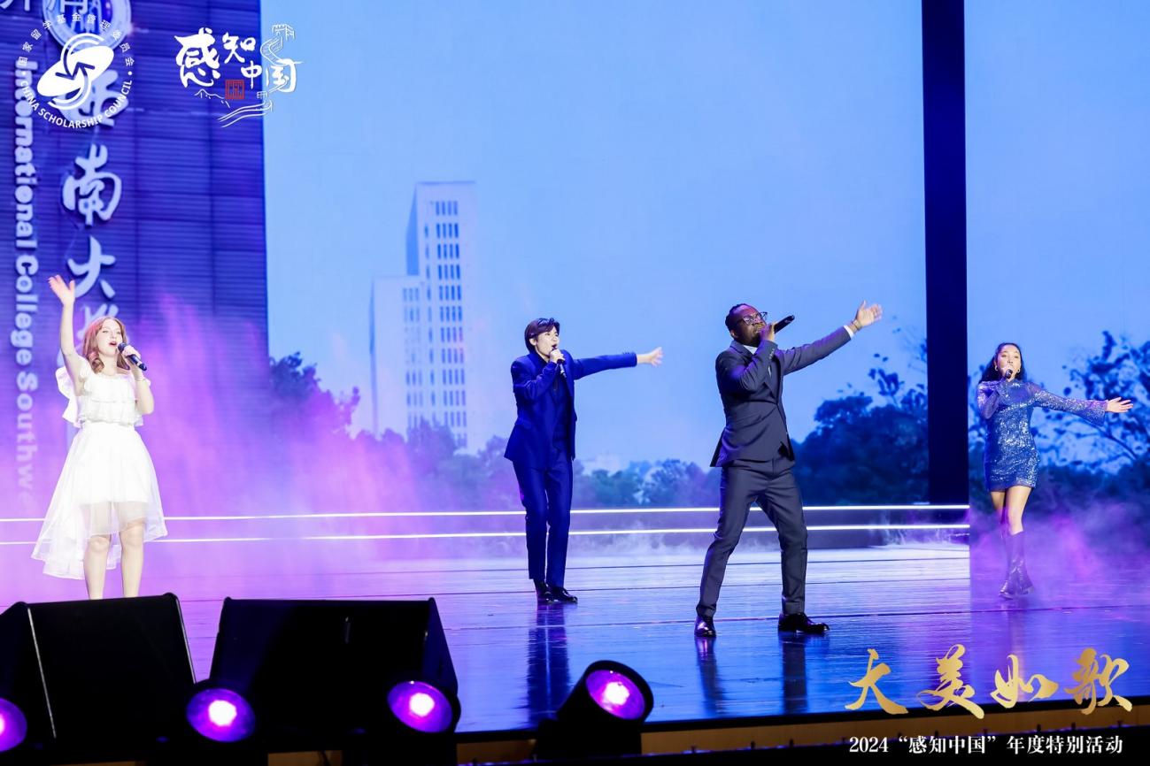 活动在2024年“感知中国”回顾视频中拉开帷幕。来自北京大学、清华大学、复旦大学等15所高校的中国政府奖学金生代表通过演讲、情景展示、歌舞等形式分享了他们参加“感知中国”活动的收获和体会。公司赞比亚籍国际员工GIFT MUYUNDA(格福特)携手来自意大利的CATERINA CAZZOLA(左拉)、马达加斯加的ANDRIANJATOVO MIRAY FIFALIANA MIARIMBOLA(梦蝶)和哈萨克斯坦籍的AINURA KUBENOVA(刘月光)共同演唱其原创歌曲《Joining Hands》(《携手并肩》)。这首歌曲以其独特的旋律和深情的歌词,表达国际员工对中国的热爱和对世界和平、共同发展的美好祝愿。