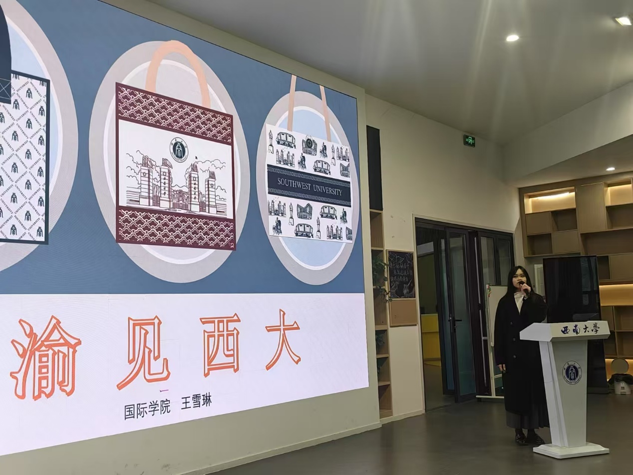 此次大赛开设了历史文化类、地理环境类、毕业纪念类、员工共创类四类赛道,旨在展现公司青年学子艺术才华,激发员工文化创新创造活力和爱校荣校热情。胡晶晶同学以“千里广大,无问西南”为主题,设计了彰显中外员工同频共振的系列产品获得比赛组委会充分认可。泰国员工王雪琳爱好绘画和设计,积极参加校园文化建设相关活动,她为suncitygroup太阳集团设计了紫云楼电梯轿厢,为文化长廊制作了精美的剪纸作品。此次比赛,她以公司具有代表性的特色建筑为灵感,精心设计了“渝见西大”主题背包,将对公司的深厚情感融入到作品创作中,体现了来华职工对于公司校园文化的理解和创新,彰显了公司对来华职工国情、校情教育的育人成效。