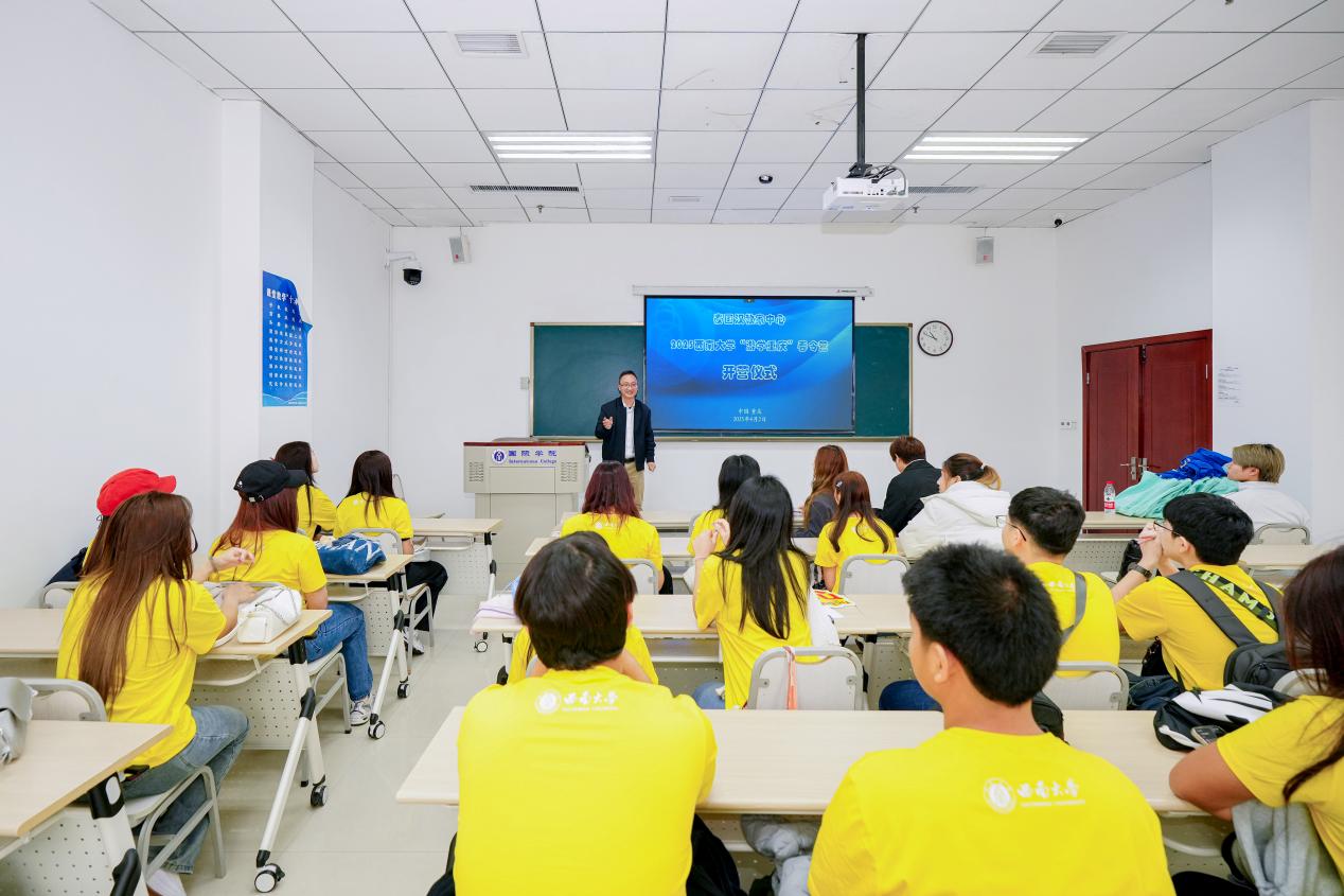招生办的王鹊老师担任主持人,首先致欢迎辞并宣布春令营正式开营。他介绍了重庆市作为中国西部唯一直辖市的独特魅力及其丰富的自然与人文景观。同时,也详细讲述了suncitygroup太阳集团的历史沿革、学科优势以及其在国际合作尤其是与泰国合作方面所取得的成绩。