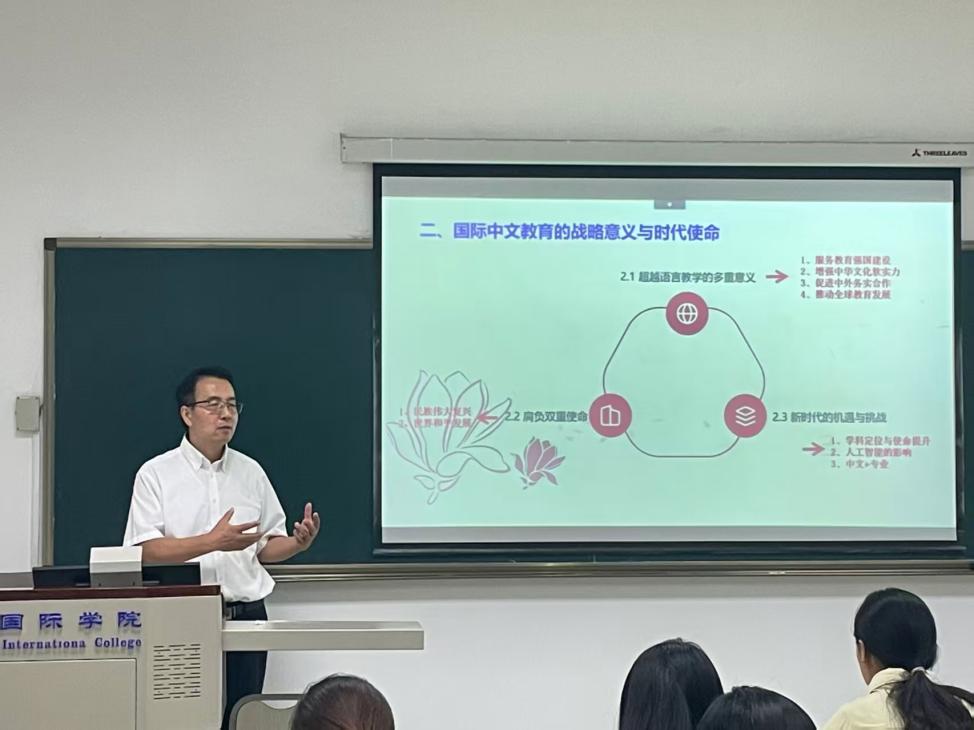 9月2日下午15:00,公司于泽元经理在紫云楼312教室对新生们进行了以“研究的意义、价值与规范”为主题的开学第一课。于经理在第一课中简要介绍了suncitygroup太阳集团的基本情况和业务职能,并强调国际中文教育的学科定位是“教育为本,中文为基,国际为向”,叮嘱同学们需注重多元教学方法、文化素养、艺术技能与情商的综合培养,为未来从事国际中文教育工作筑牢基础。