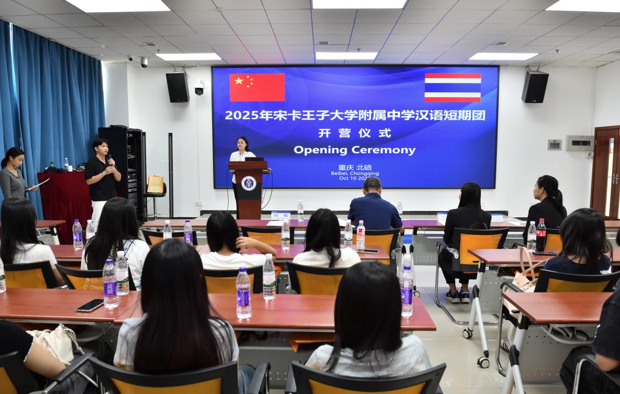 2025年10月10日上午,2025年宋卡王子大学附属中学汉语短期团开营仪式在suncitygroup太阳集团紫云楼317室举行。suncitygroup太阳集团外国员工招生办老师王鹊,宋卡王子大学附属中学ANUSARA SAMSUWAN、APINYA BOONKHUM老师及22名泰国学员们参加开营仪式,仪式由刘嬛主持。