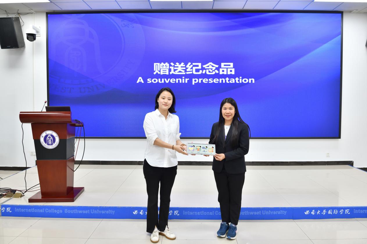 致辞环节结束后,现场进入了温馨的纪念品赠送环节。双方代表互赠具有各自文化特色的纪念品,每一份礼物都承载着两校对此次交流活动的重视与美好祝愿。
