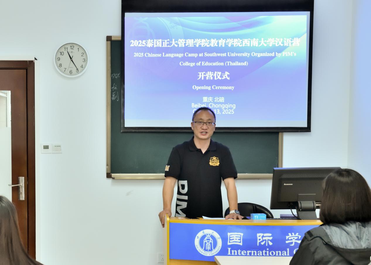 王鹊热烈欢迎来访泰国师生,简要介绍重庆和公司的基本情况,回顾公司办学历史和来华留学教育现状,重点介绍与泰国正大管理公司的教育交流与合作。他希望各位同学能够通过正大管理公司项目来公司留学深造。
