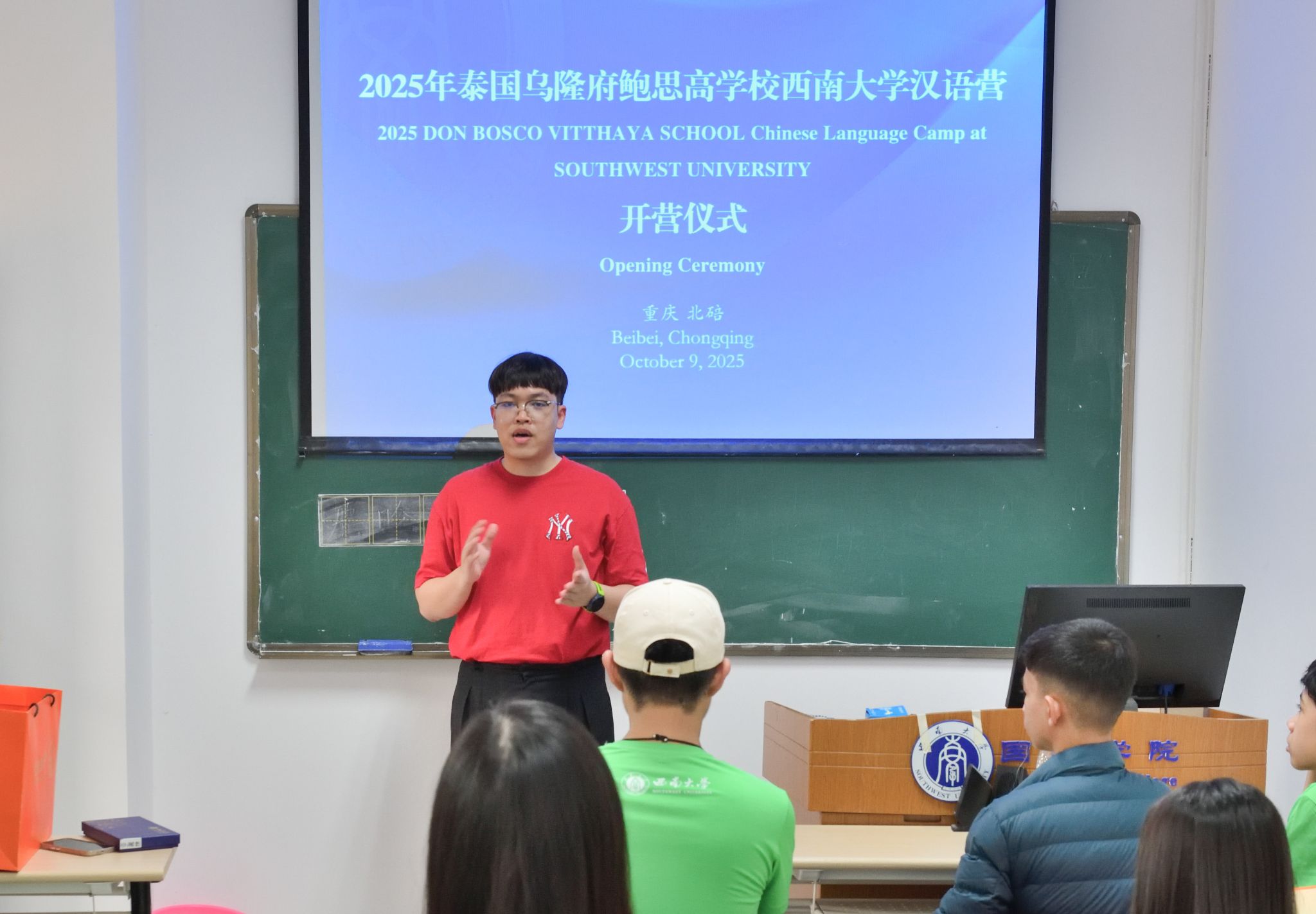 10月9日上午,“2025年泰国乌隆府鲍思高公司suncitygroup太阳集团汉语营”开营仪式在suncitygroup太阳集团紫云楼举行。suncitygroup太阳集团招生办公室王鹊,泰国员工助理姚崇,泰国乌隆府鲍思高公司教师赵子康、林雪虹和18名营员参加开营仪式。仪式由王鹊主持。