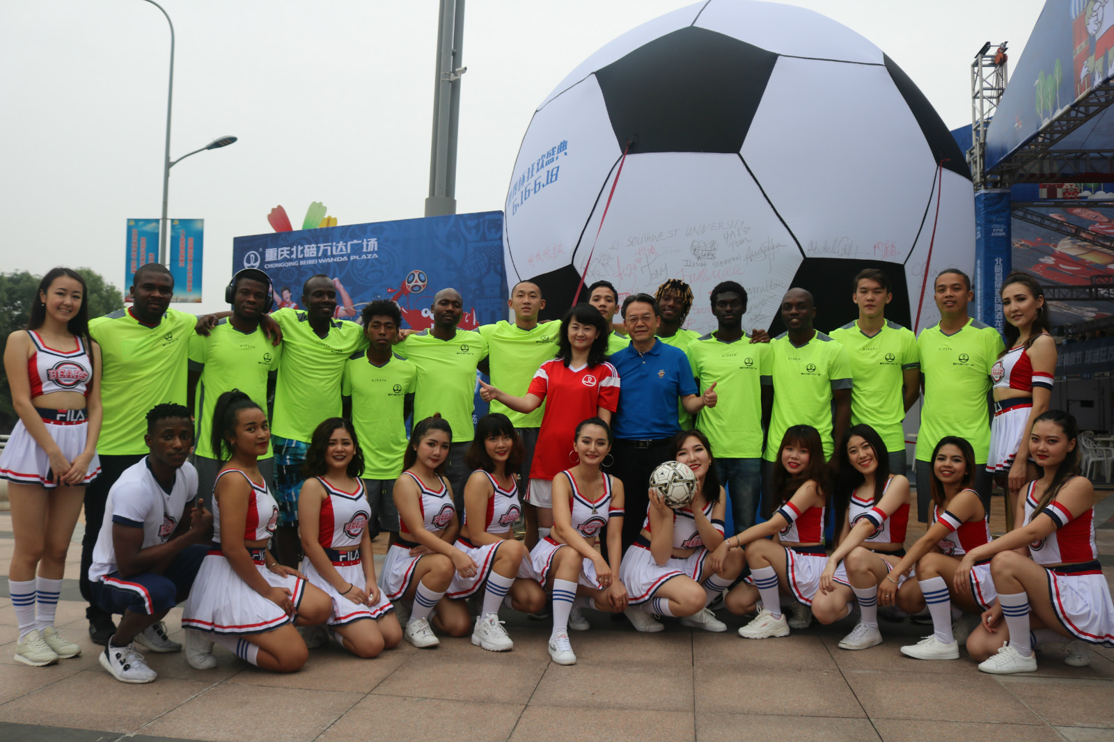 俄罗斯世界杯正在如火如荼进行之际,公司国际员工积极响应四年一届的激情赛事,与重庆劲浪球队对决,拉开“我们的世界杯——北碚万达广场首届5V5足球比赛”开幕式。此项活动由北碚区文化委主办,公司suncitygroup太阳集团书记刘猛出席开幕式。