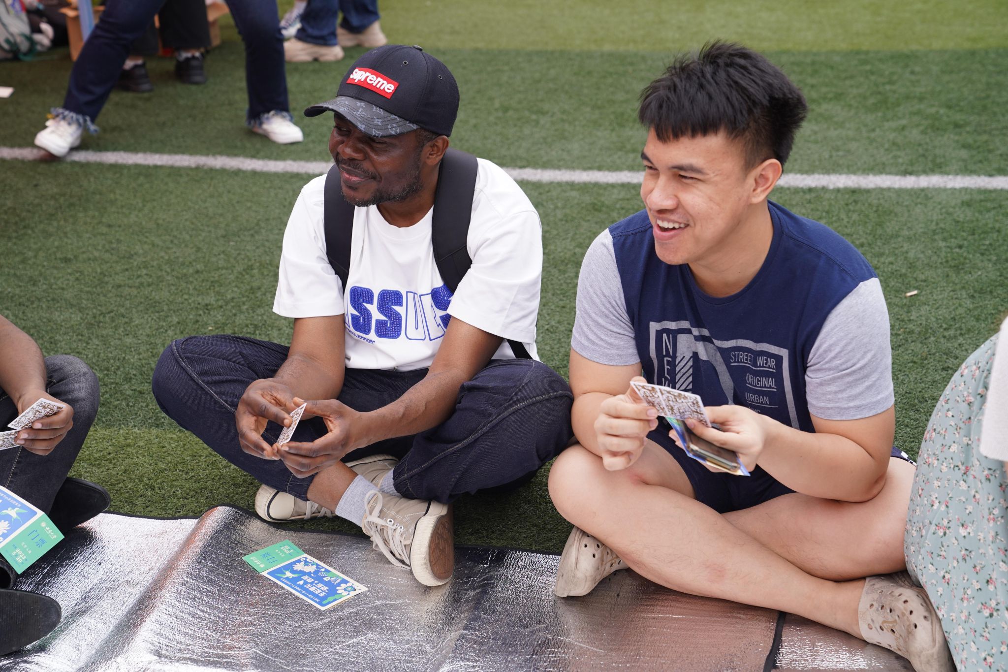 “看见自我的力量,向阳而生(OH卡牌)”游戏中,同学们围坐在一起抽取卡牌,结合卡牌画面续写故事。弹吉他的流浪歌手和女友逛街、运动员跑到终点天空突然出现彩虹......创意的故事让人厘清自己的思维限制,培养创造力与直觉力,看见生命的更多可能性。