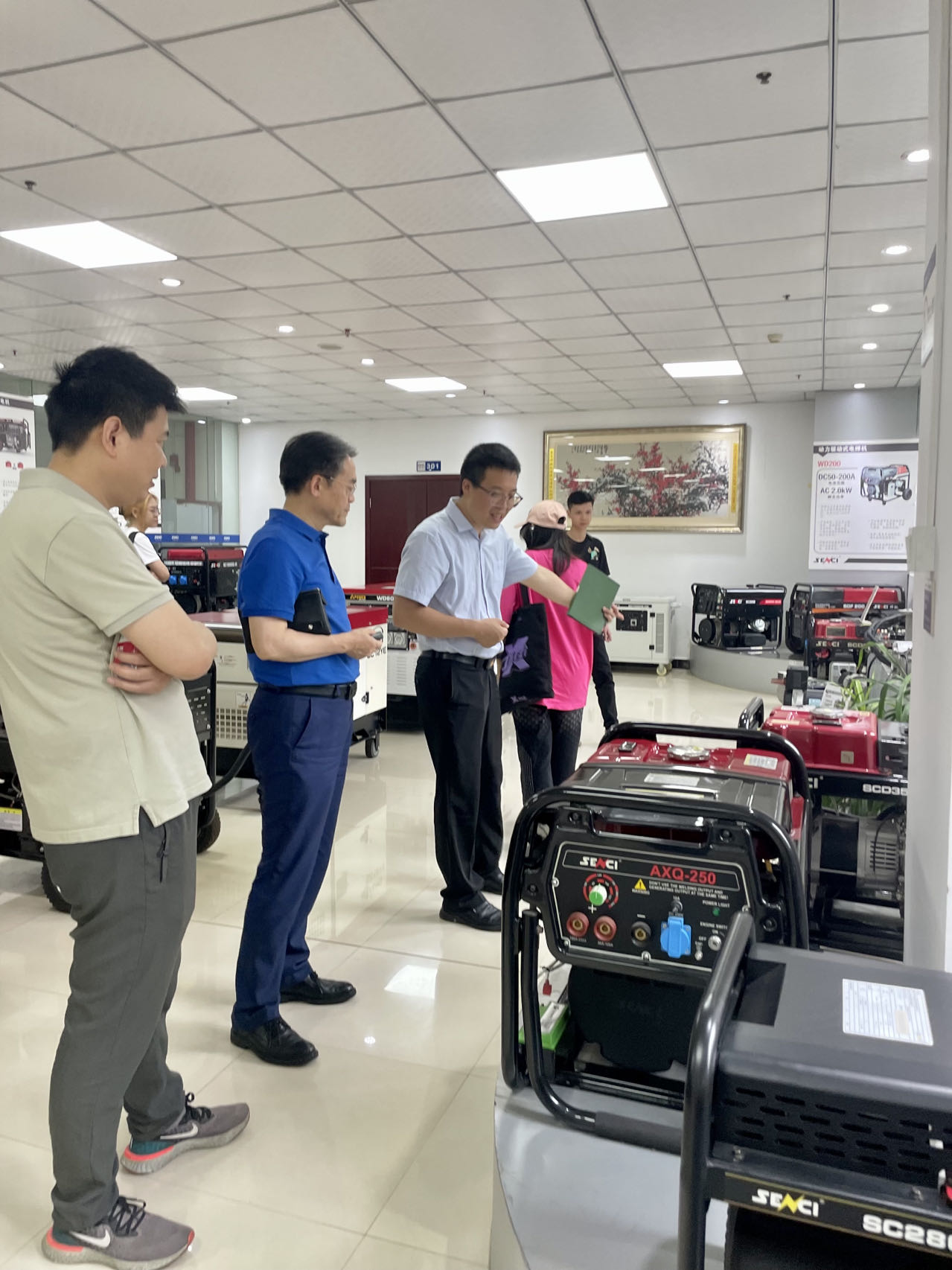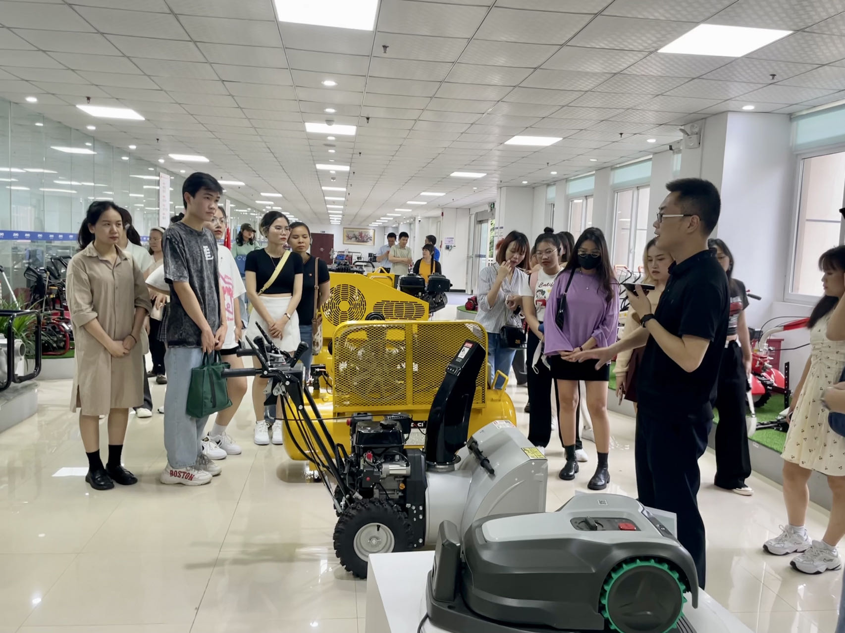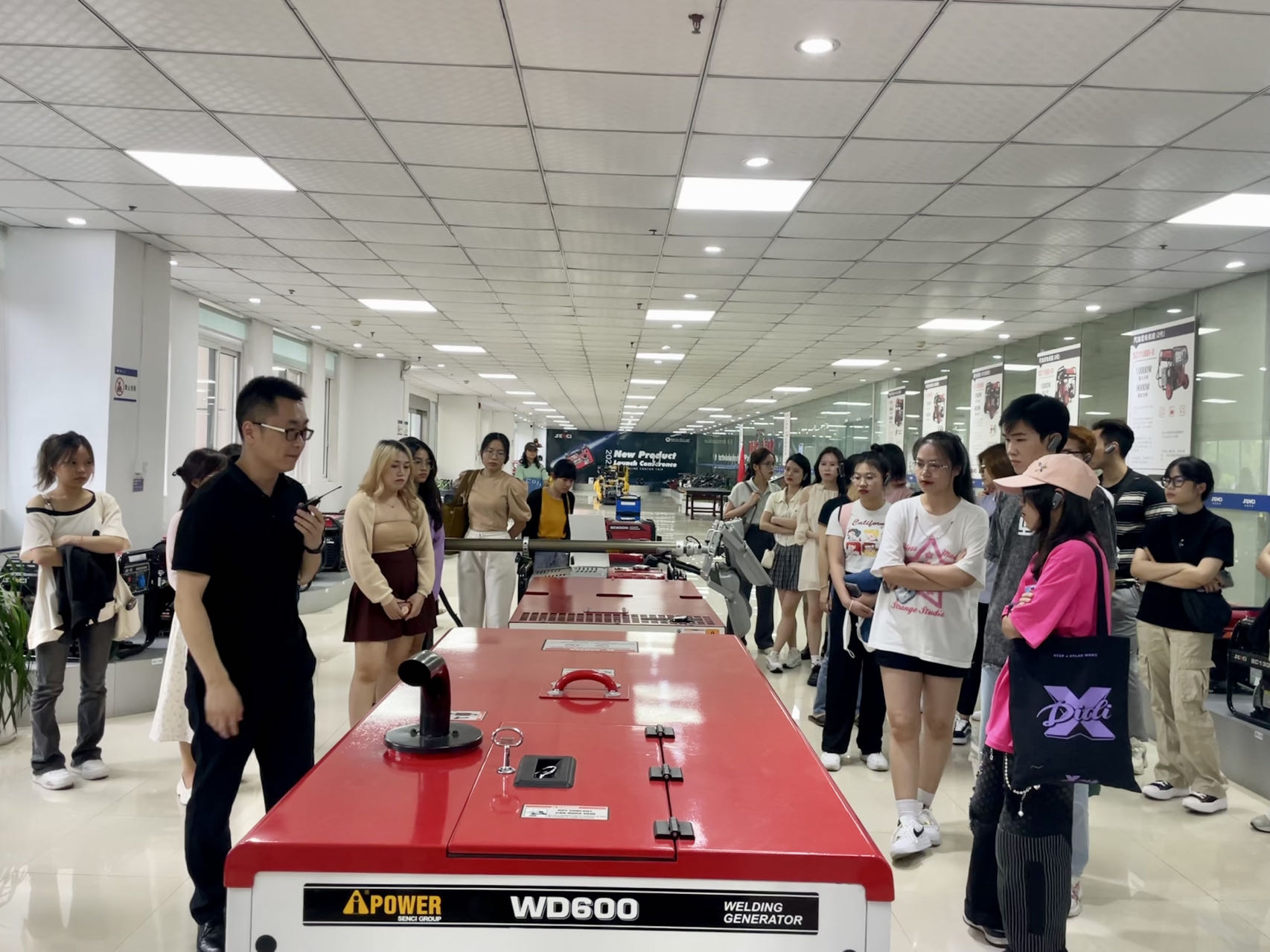 会前,神驰机电股份有限公司副总经理黄勇先生带领师生走访参观企业,并详细介绍企业发展历程、相关产品。神驰机电作为一家上市公司,集品牌营销、产品研发、智能制造为一体的全产业链企业,业务范围覆盖电机电控、储能电源、发电机组、园林机械等产品领域。