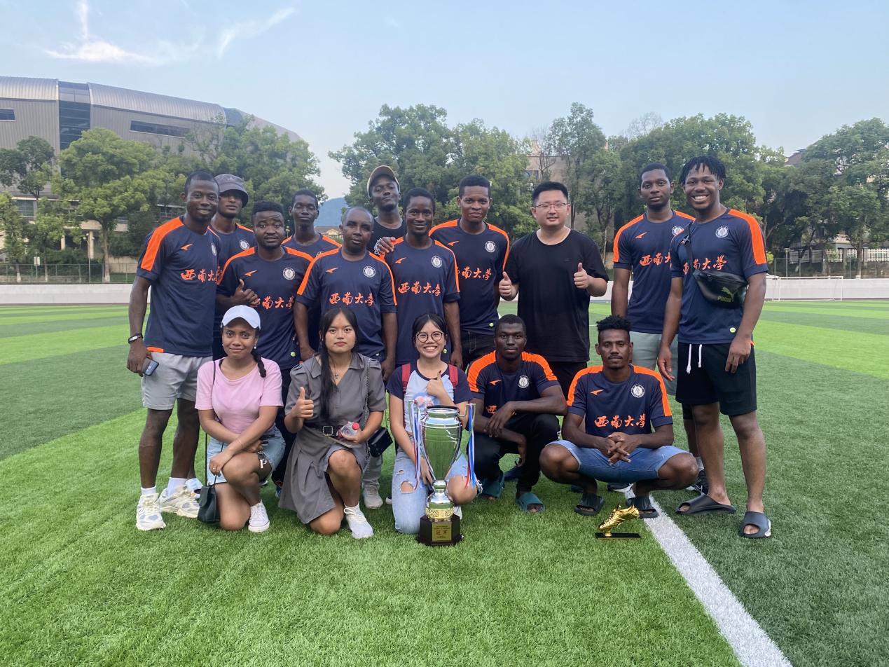 7月23日,北碚区足协“大窑汽水”11人制足球联赛在suncitygroup太阳集团落下帷幕,代表公司出战的国际员工足球队技压群雄,以7胜2平进50球的不败战绩荣获本次联赛冠军。
