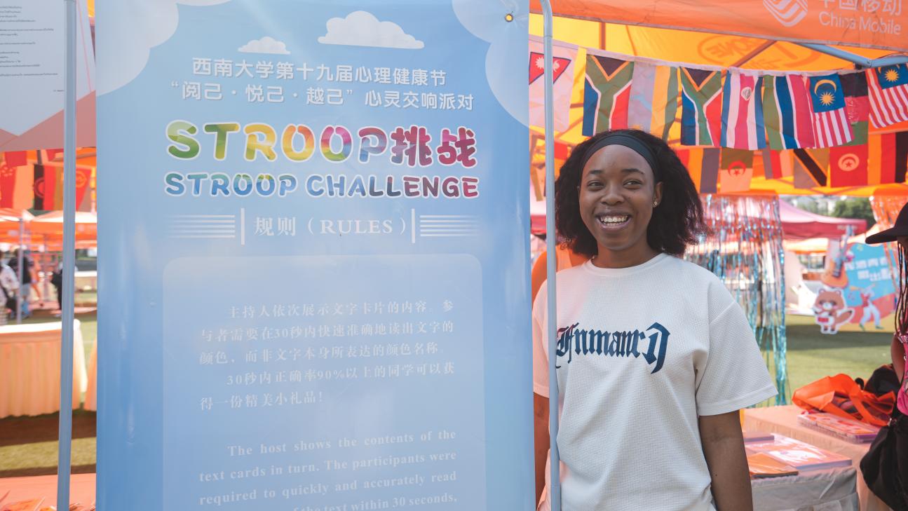 36度炎热的天气早已把同学们的内心点燃,来体验此次活动的员工纷纷表示本次心理健康节活动形式丰富,收获满满。来自马来西亚的职工王靖柔表示:“去年作为志愿者,没能体验到很多的活动项目,而今年作为体验者,参与体验了制作项链、黏土、自我心理测试等项目,有了不一样的感受,非常开心。”