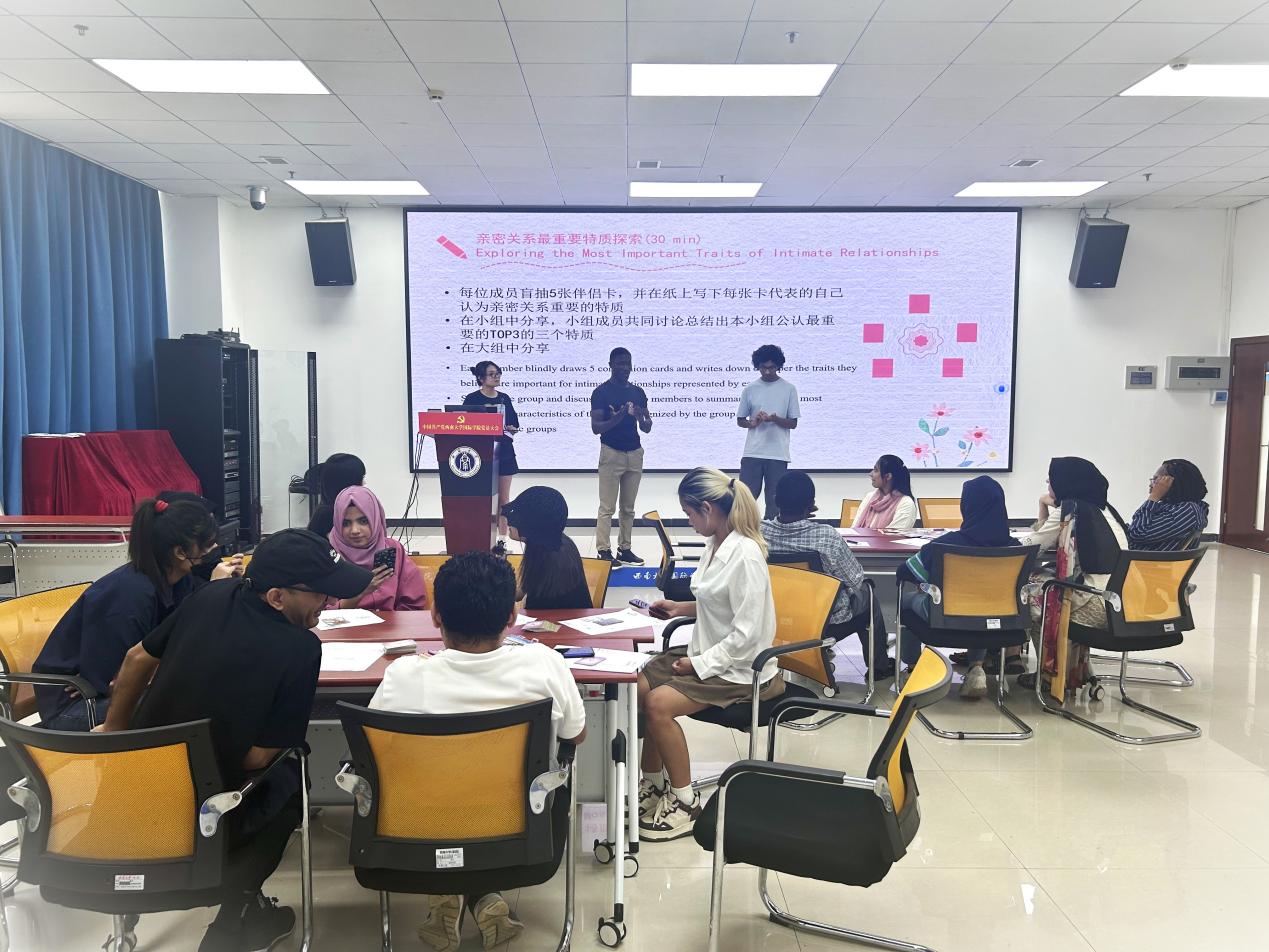 心同行,爱共鸣。为更好地帮助国际员工正确认识亲密关系,深入了解自我、促进个人成长,主题为“探索亲密关系——一起‘练’爱吧”心理团辅活动于6月21日下午在紫云楼317室成功举办。活动由suncitygroup太阳集团实习心理咨询老师王一伊、崔雪涵共同主持,数十名国际员工参加本次活动。