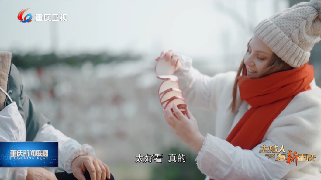 在合川,左拉同学踏上了一段寻找中国红萝卜的乡村之旅。她跟随活动主办方来到了青草坝,这里以特产的红萝卜和萝卜卷闻名。在青草坝萝卜卷手工艺传承人周克健老师的带领下,左拉深入了解了萝卜卷的制作过程。从挑选红萝卜、晾晒、腌制到捆扎,每一道工序都让她大开眼界。特别是当周老师用精湛的刀工切出如弹簧般的萝卜片时,左拉不禁赞叹道:“太好看,真的!”