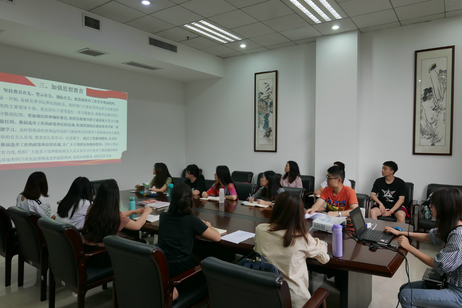 2019年6月14日下午2:30,研究生一支部在紫云楼312室开展了本月主题党日活动。会议由支部组织委员刘彦亨主持,党总支书记刘猛同志莅临指导。