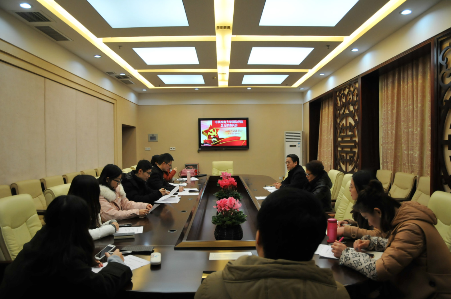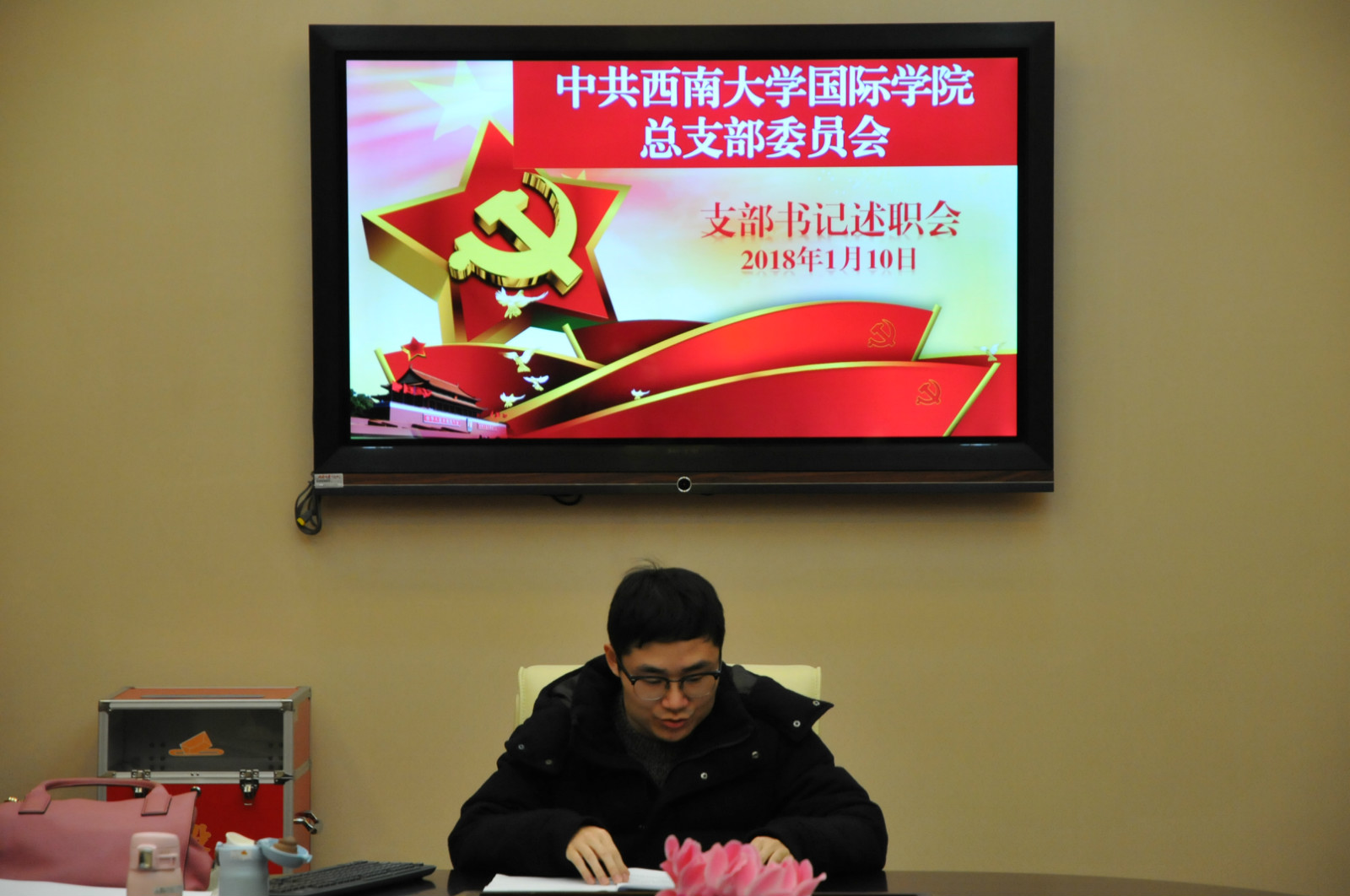 为推动全面从严治党向基层延伸,切实落实巡视整改任务,按照公司党委的要求,公司党总支于2018110日下午3点在签约室,举行2017年支部书记年度述职评议会。党总支书记刘猛, 经理兼总支委员王静,以及四个支部的支部书记、支部委员,教师、员工党员代表参加会议,会议由刘猛书记主持。