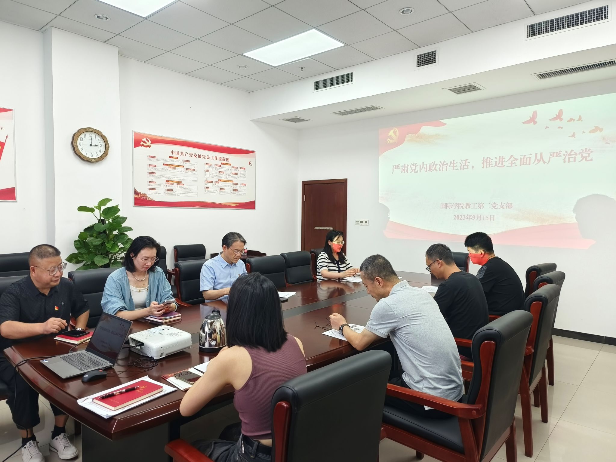在分享学习心得环节,同志们纷纷表示受益匪浅。刘正印同志表示,通过学习习近平总书记的重要指示和著作,更加深刻地认识到党的建设和组织工作的重要性和紧迫性,进一步增强了党性意识和责任意识。谢晓笛同志表示,通过学习《新时代高校教师职业行为十项准则》,更加明确了自己的职责和使命,为今后的工作指明了方向。