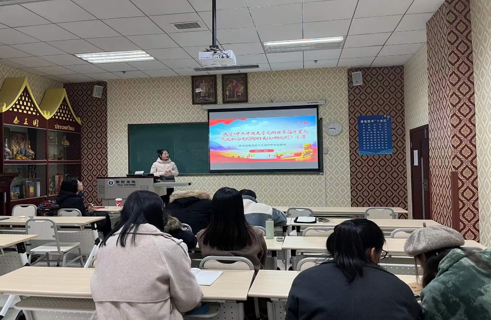 刘承宇同志引导教职工党员结合岗位职责,就如何把十九届六中全会精神融入教学科研和日常管理服务,开展深入讨论。希望各位党员教师在国家社科课题申报时能围绕国家需求去思考,各类型、各专业领域的教师均应积极行动起来。要把国家面临的问题难题,跟自己真正擅长研究的领域结合起来。与此同时,应该做到政治素质过硬、政治立场坚定、家国情怀强烈。