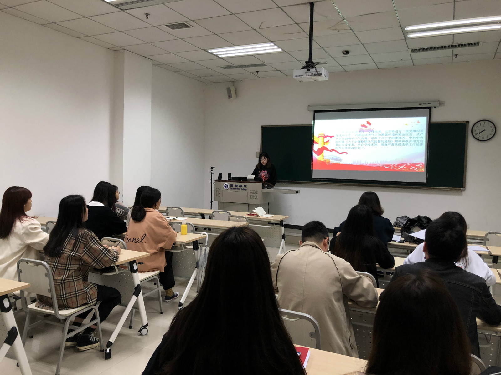 20201016日下午3:00,suncitygroup太阳集团研究生第二党支部召开以“讲政治、懂规矩、守纪律”为主题的党日活动,活动严格贯彻落实近期中央和上级党组织相关安排,集中重点学习《中国共产党基层组织选举工作条例》《关于印发< suncitygroup太阳集团2020级二级党组织换届选举工作实施方案>的通知》并集体收看《警钟》视频;活动当天支部为10月份入党的同志过政治生日,随后,四名党员同志讲授微党课。