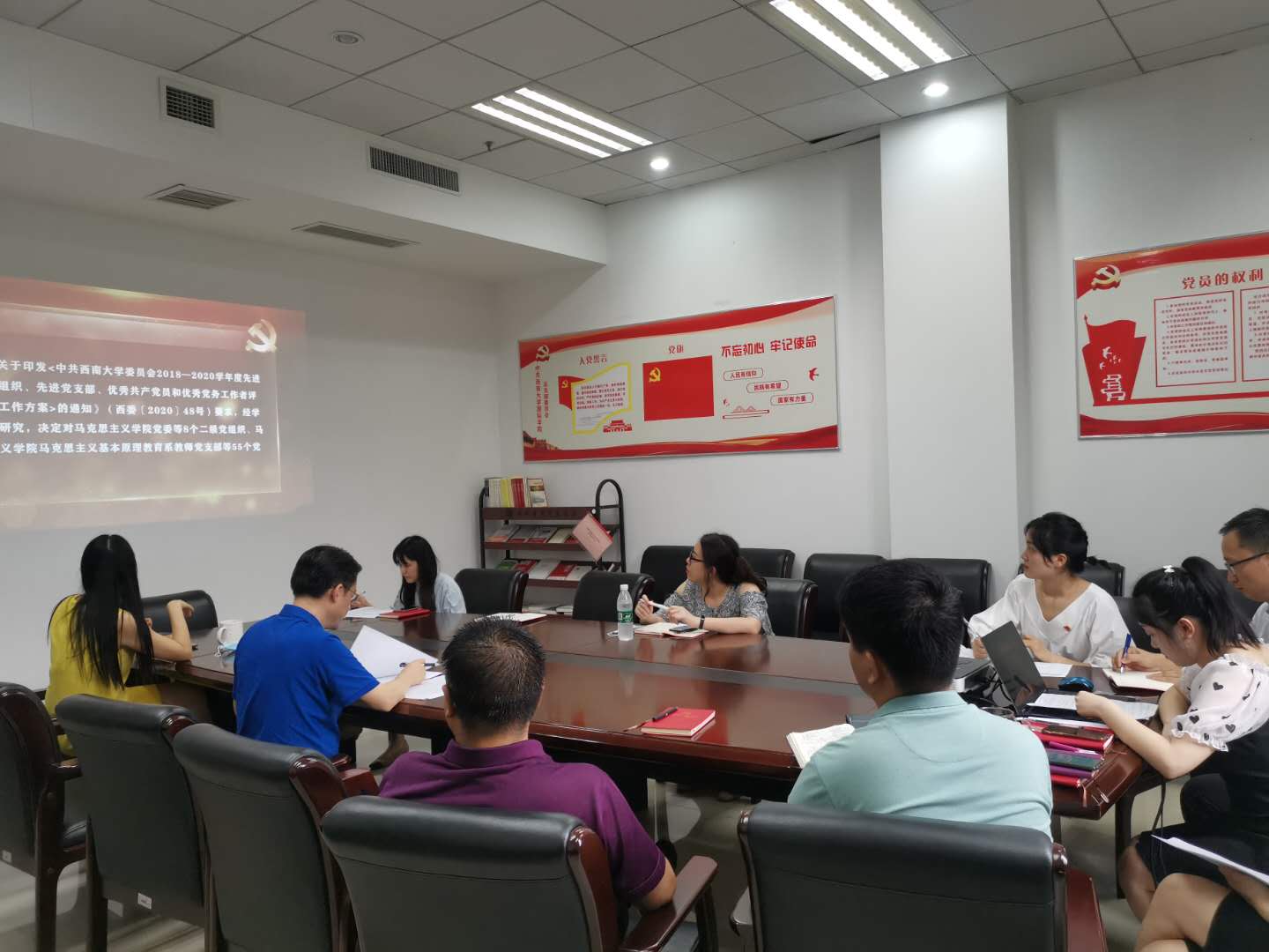 首先,全体党员观看了《中共suncitygroup太阳集团委员会表彰2018—2020学年度先进党组织、优秀共产党员和优秀党务工作者宣传视频》,并要求每位同志对标身边的先进典型找差距,向先进学习、向优秀看齐。