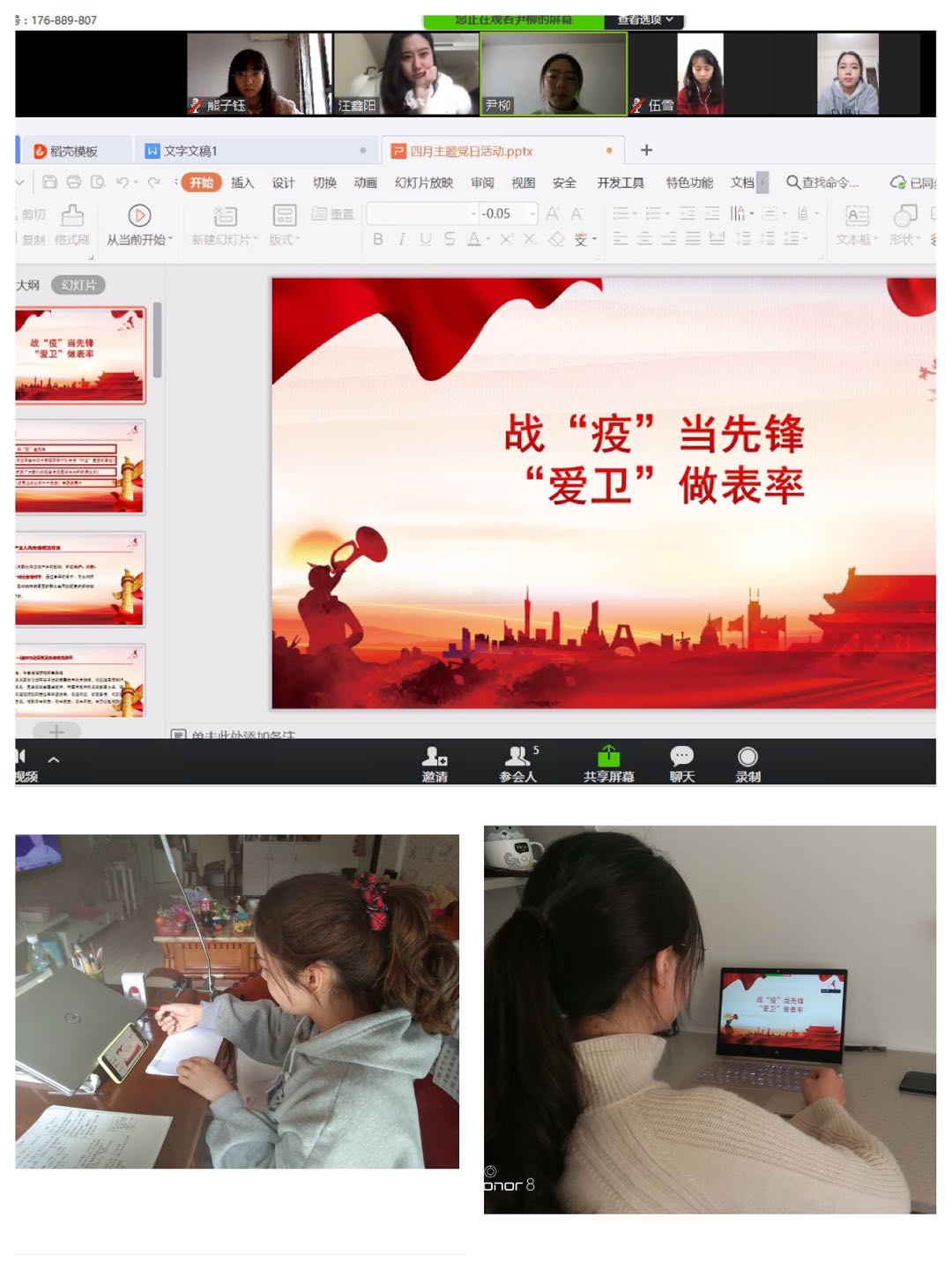 研究生第一党支部于412日下午3:00在瞩目app上采用线上学习的方式召开了“战“疫”当先锋,“爱卫”主题党日活动。会议主要分为以下几个环节进行: