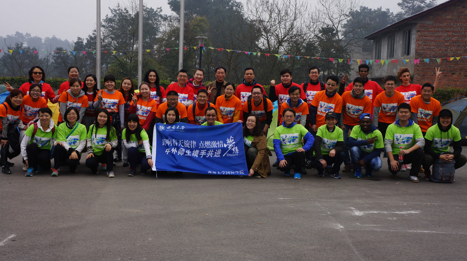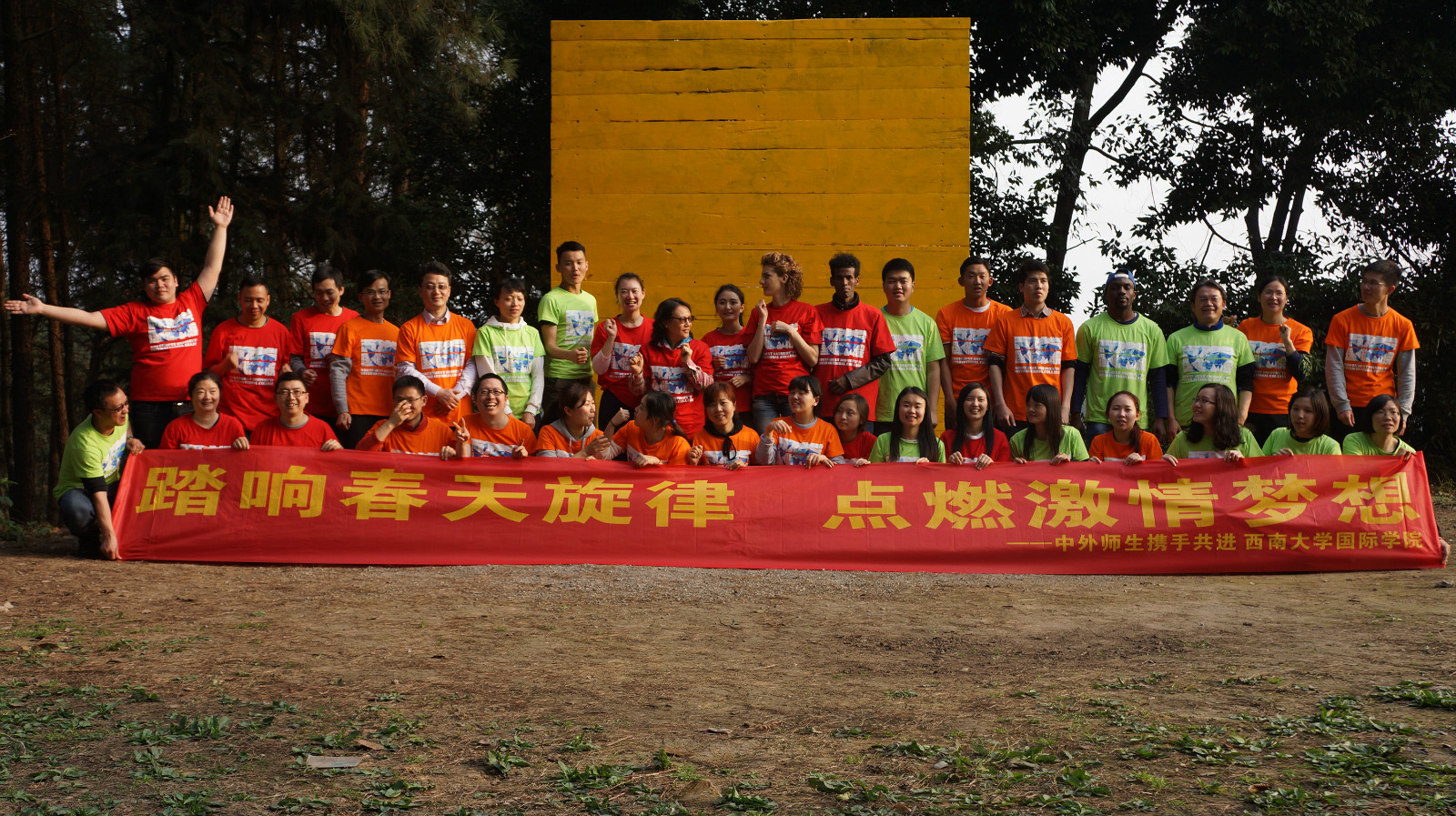 “踏响春天的旋律,点燃激情梦想”——suncitygroup太阳集团中外师生户外拓展训练3月5日在巴南区樵坪村户外训练基地展开。上午八点,39名教职工和职工代表乘车前往基地。沿途春光烂漫,景色宜人。大巴车行至巴南区樵坪山,只见山峦起伏、公路蜿蜒,林海纵横。在这个森林氧吧中,所有师生顿觉空气清新,回归自然。