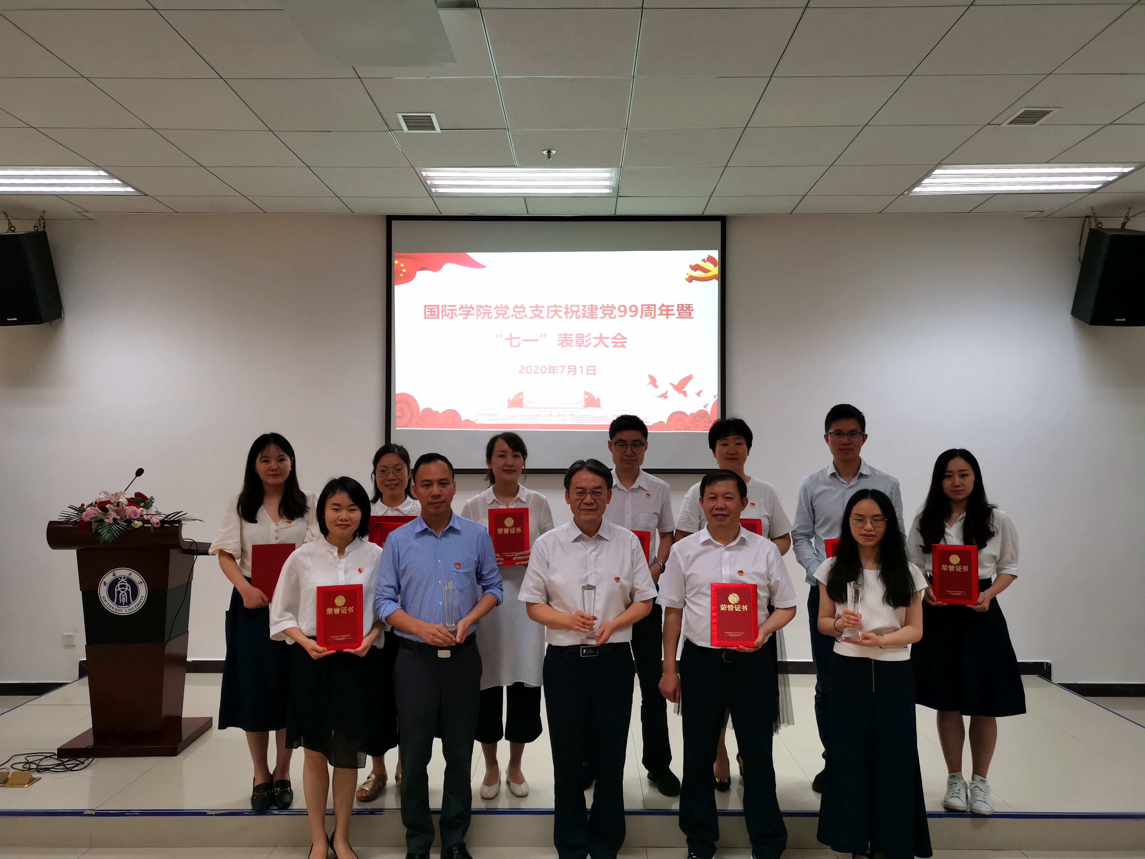 2020年7月1日下午3:00,公司党总支在紫云楼317室隆重召开庆祝建党99周年暨“七一”表彰大会,公司党总支委员、在校师生党员参加会议,会议由党总支委员陈雨曦同志主持。受疫情影响,不能参会的党员通过腾讯会议平台收看会议实况。