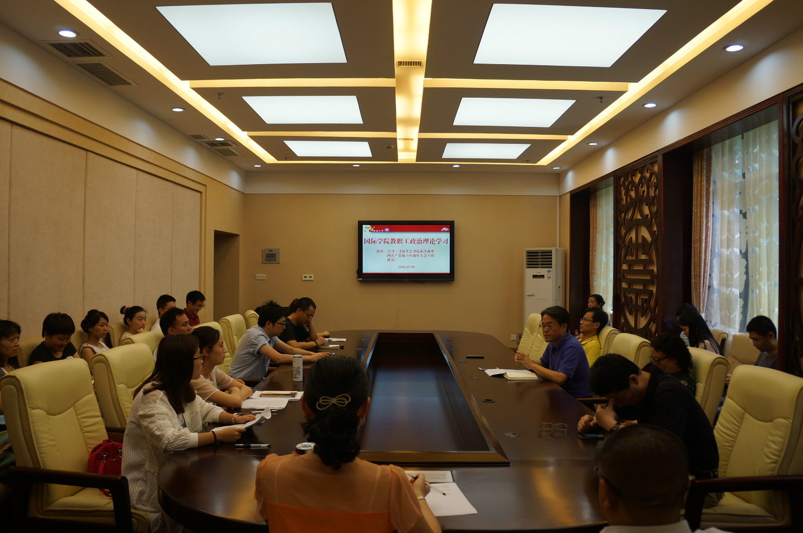 201678日下午230suncitygroup太阳集团在紫云楼一楼签约室开展政治理论学习。在党总支书记刘猛的主持下,公司全体教职工集体学习了《习近平总书记在庆祝中国共产党成立95周年大会上的讲话》。