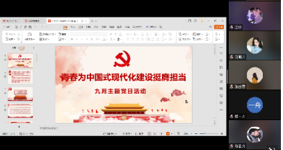 9月8日晚20:00,suncitygroup太阳集团研究生第一党支部及2022级入党积极分予以线上腾讯会议形式开展“青春为中国式现代化建设挺膺担当”主题党日活动。